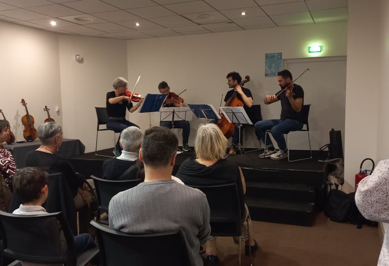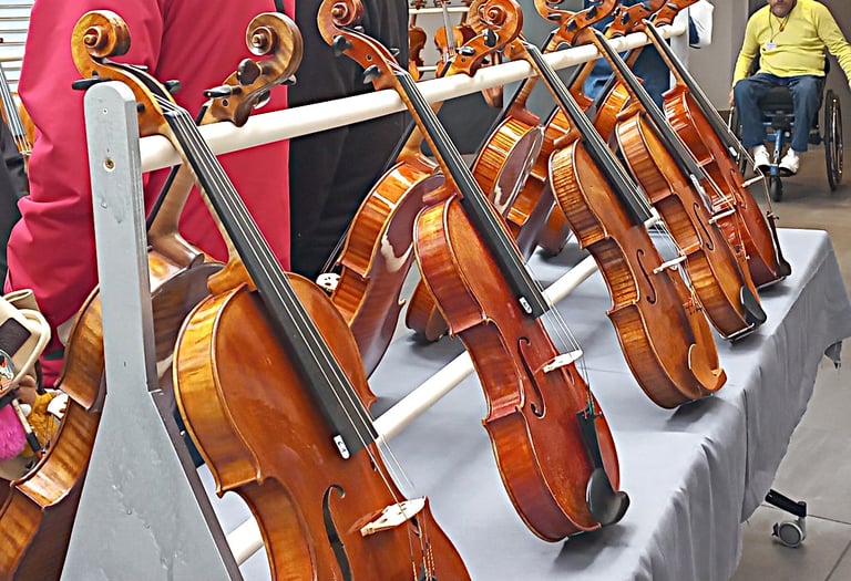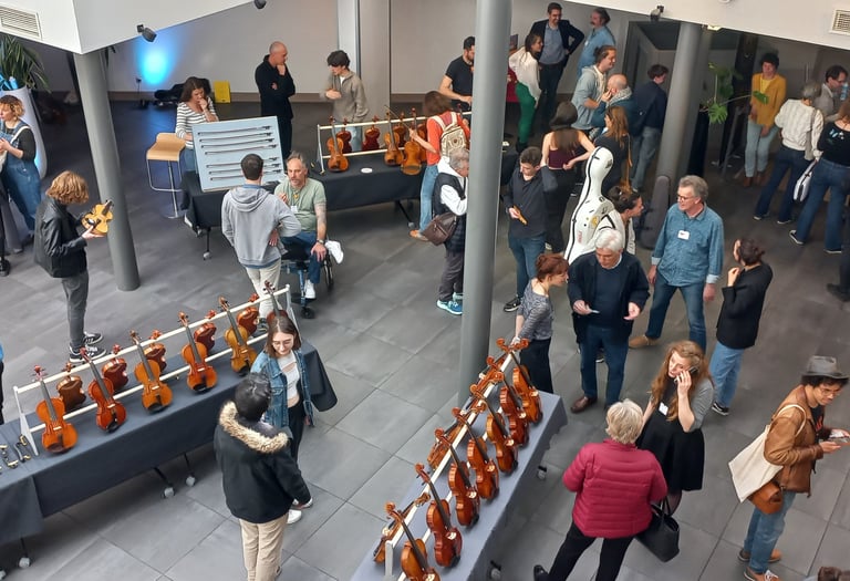 Tous les instruments seront présentés par famille violon, alto, violoncelle, contrebasse. Si lors des essais l’un de ces instruments vous plaît, vous pourrez vous isoler dans l'un des espaces mis à disposition ( temps limité pour que le plus grand nombre y ait accès )