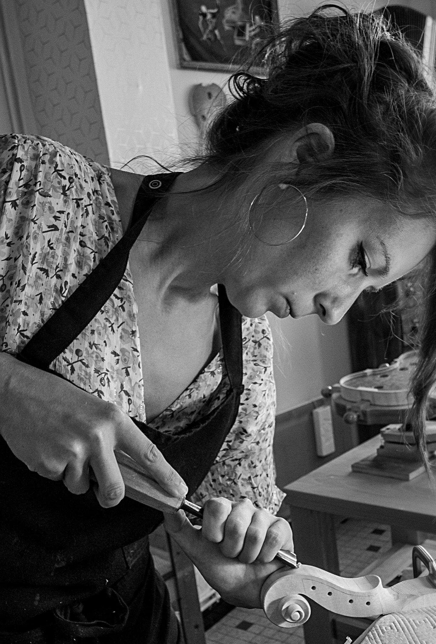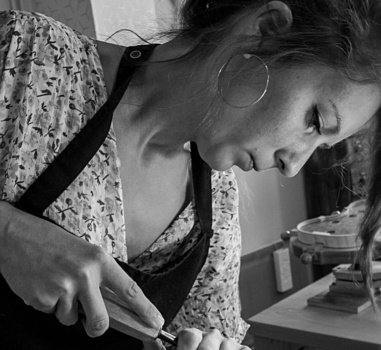 J'ai suivi ma formation de luthier à Mirecourt en 2008. J'ai approfondi mes connaissances dans de nombreux ateliers, principalement à Angers et à Lyon, découvrant avec beaucoup de curiosité les différentes approches et méthodes de luthiers reconnus. En 2017, j'ai ouvert mon propre atelier en Corrèze, pour me consacrer exclusivement à la fabrication de violons et d'altos. Je m'efforce d'étudier et de comprendre l'architecture des instruments des grands maîtres italiens des XVIIe et XVIIIe siècles, ainsi que les techniques utilisées. J'essaie de m'inspirer de ces modèles pour développer une esthétique et une sonorité qui me sont personnelles.
