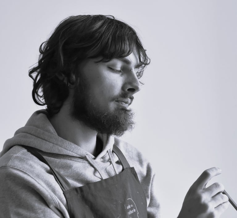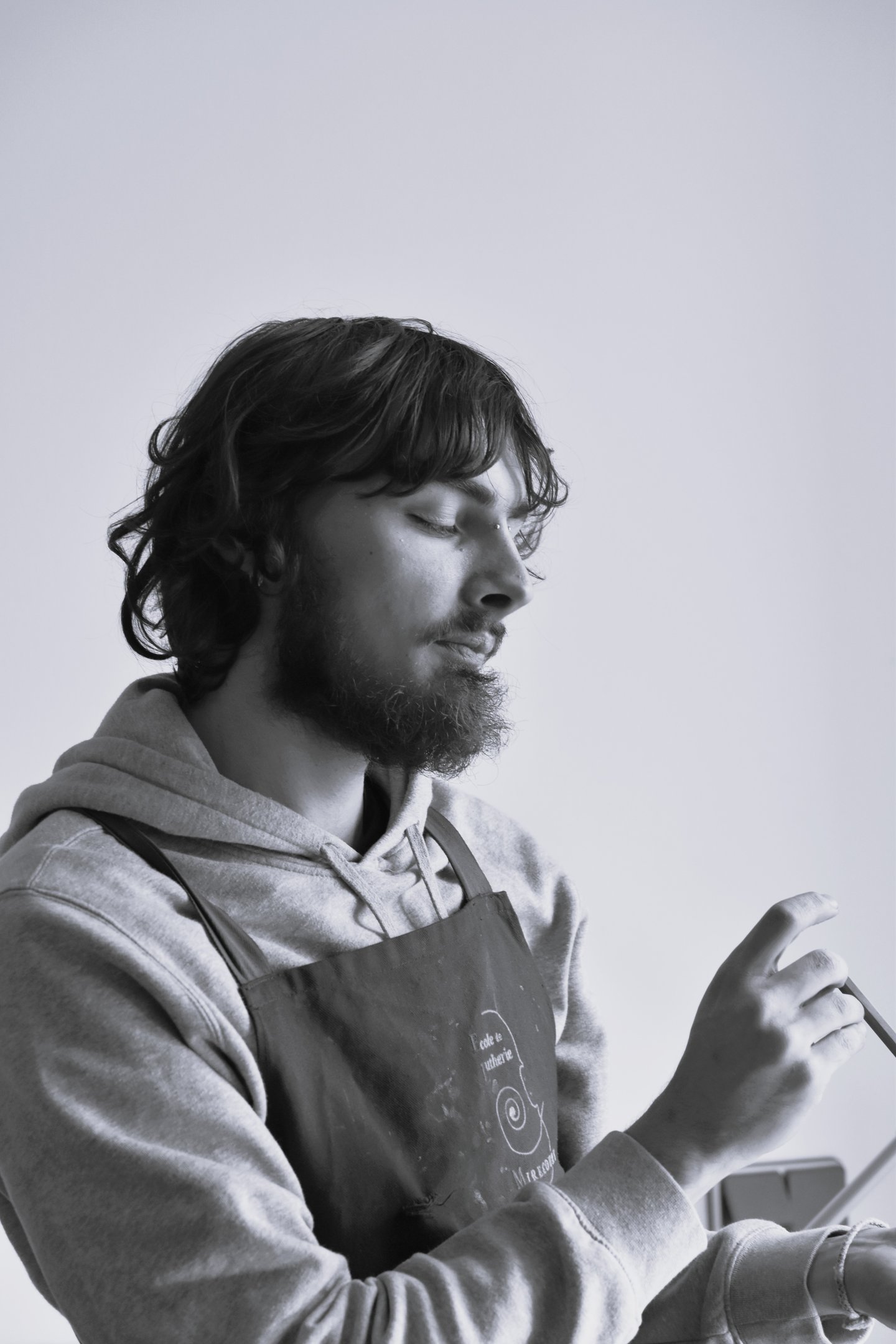 "Après mon diplôme à l'école de lutherie de Mirecourt, j'ai appris l'archeterie en 2024 dans un atelier à Lille. Puis j'ai suivi les formations de L'ALADFI. Je suis installé à Mirecourt dans les Vosges et projette de m'installer à Angers en 2026. Je suis fabricant d'archets, spécifiquement inspirés des périodes baroques, classique et romantique. La démarche de ma production est double à la fois motivée par la passion de la musique et de l'objet, mais aussi par des convictions personnelles et des recherches autour d'alternative réelle au pernambouc."
