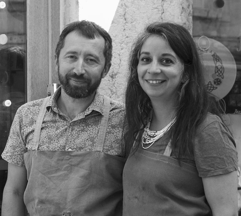 Nous avons été formés en Angleterre, par la suite nous avons continué à nous former dans différents ateliers en France (Grenoble, Perpignan) pendant une dizaine d'années avant de nous installer à Vienne. Nous sommes tous les deux musiciens, Pauline joue de l’alto, Elie du violoncelle et prend maintenant des cours de Contrebasse jazz. Notre activité est variée : restauration d’instruments anciens, fabrication et entretien. Le tout sur les 4 instruments du quatuor. En fabrication nous avons développé notre propre modèle de contrebasse et nous pouvons fabriquer un instrument selon vos demandes, que ce soit au niveau du son, ou des caractéristiques esthétiques.