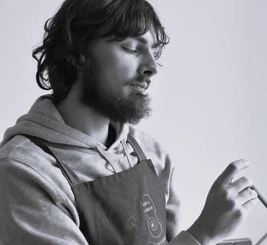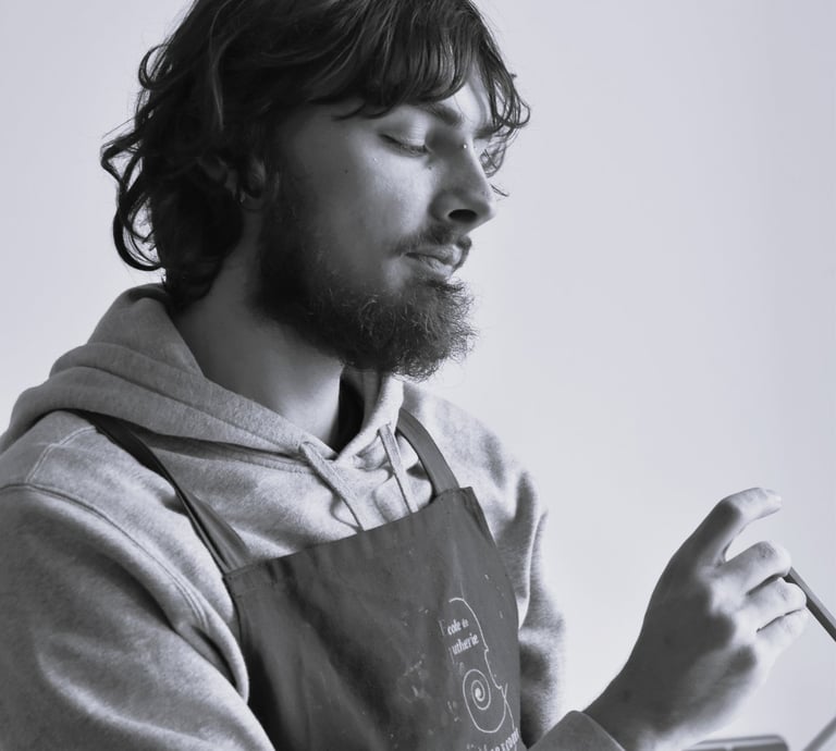 "Après mon diplôme à l'école de lutherie de Mirecourt, j'ai appris l'archeterie en 2024 dans un atelier à Lille. Puis j'ai suivi les formations de L'ALADFI. Je suis installé à Mirecourt dans les Vosges et projette de m'installer à Angers en 2026. Je suis fabricant d'archets, spécifiquement inspirés des périodes baroques, classique et romantique. La démarche de ma production est double à la fois motivée par la passion de la musique et de l'objet, mais aussi par des convictions personnelles et des recherches autour d'alternative réelle au pernambouc."